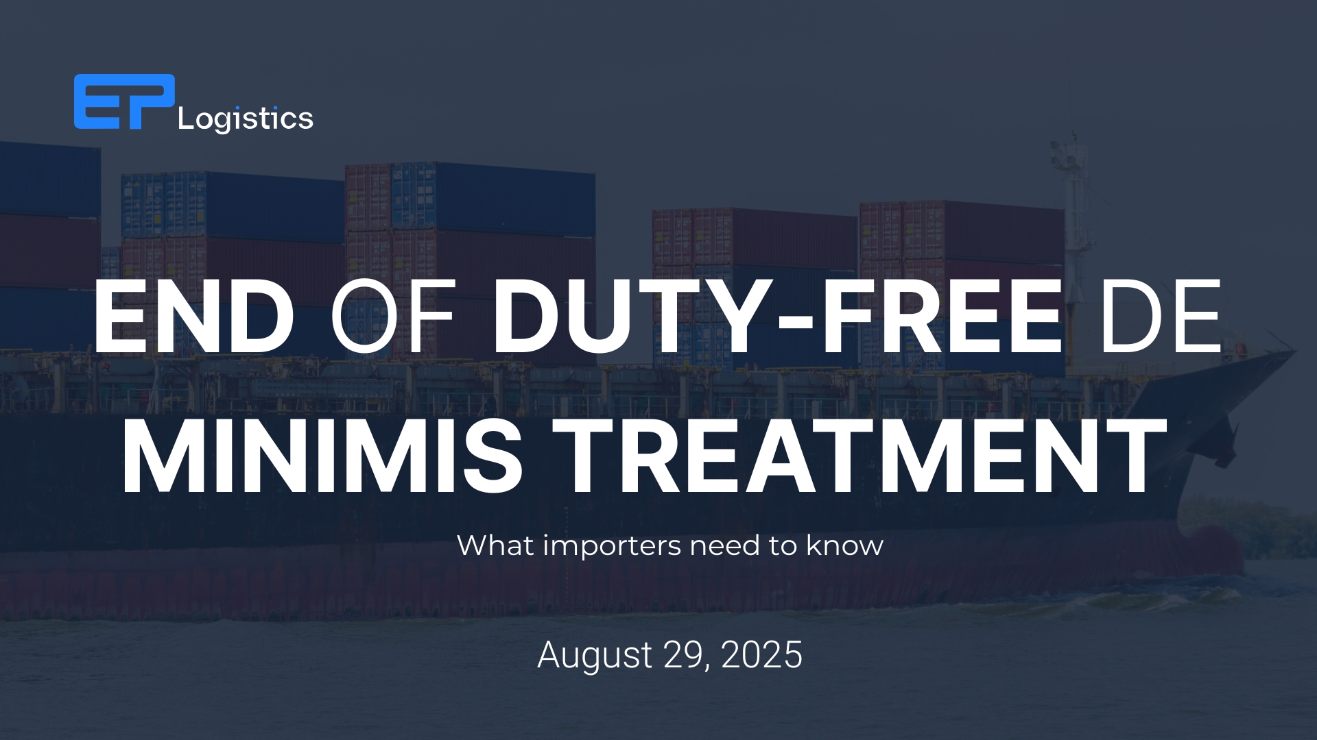 On July 30, 2025, the White House issued an Executive Order suspending duty-free de minimis treatment for all countries. Effective August 29, 2025 at 12:01 a.m. ET, U.S. Customs and Border Protection (CBP) implemented this change, officially ending the long-standing exemption that allowed goods valued at $800 or less to enter the U.S. without duties and taxes.